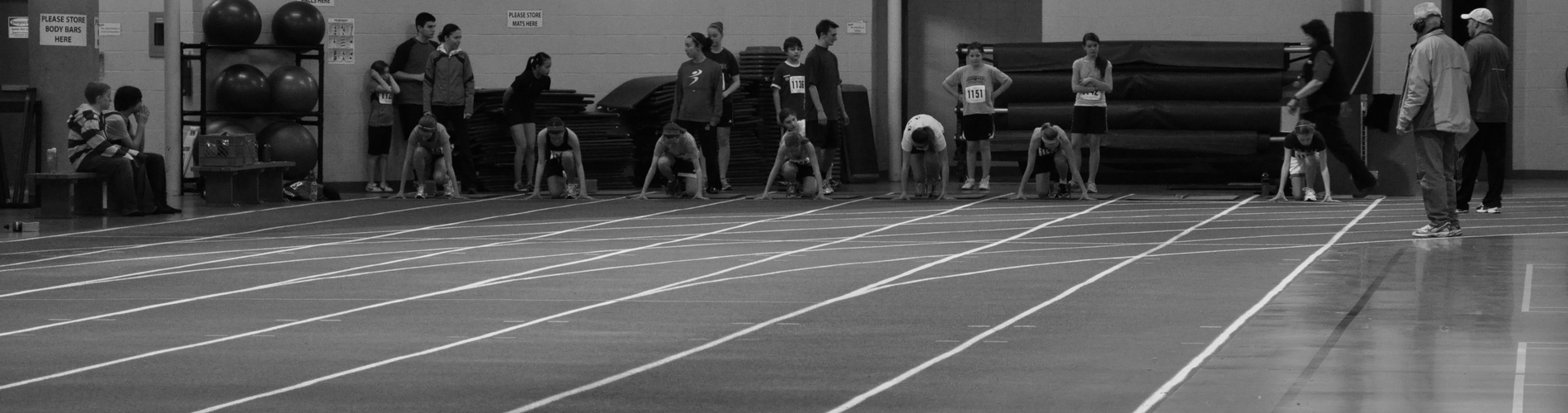 No outside footwear is allowed on the track. All participants must wear indoor sneakers or gym shoes. Any shoes designed for turf sports are not allowed. Participants may not compete in their bare feet, slippers or socks.